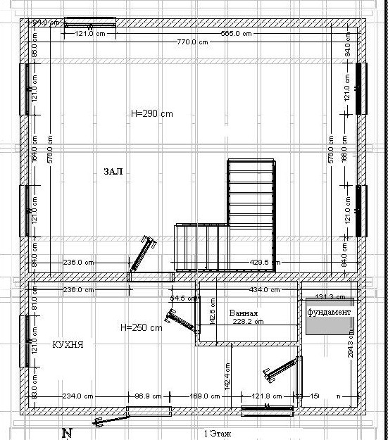 Изначально дом планировался под отопление дровяным кирпичным котлом, есть небольшой фундамент под котел (1,2*1м) на веранде.