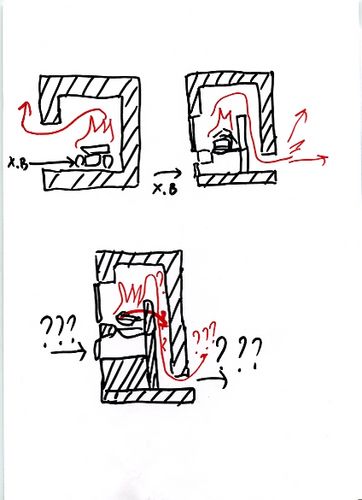 | часть газов (не знаю какой процент) уходит сразу в подвёртку, а не как у Вас на рисунке вверх и далее по стрелочкам. (проверил на опыте, подбрасывая дымные присадки в топку) |