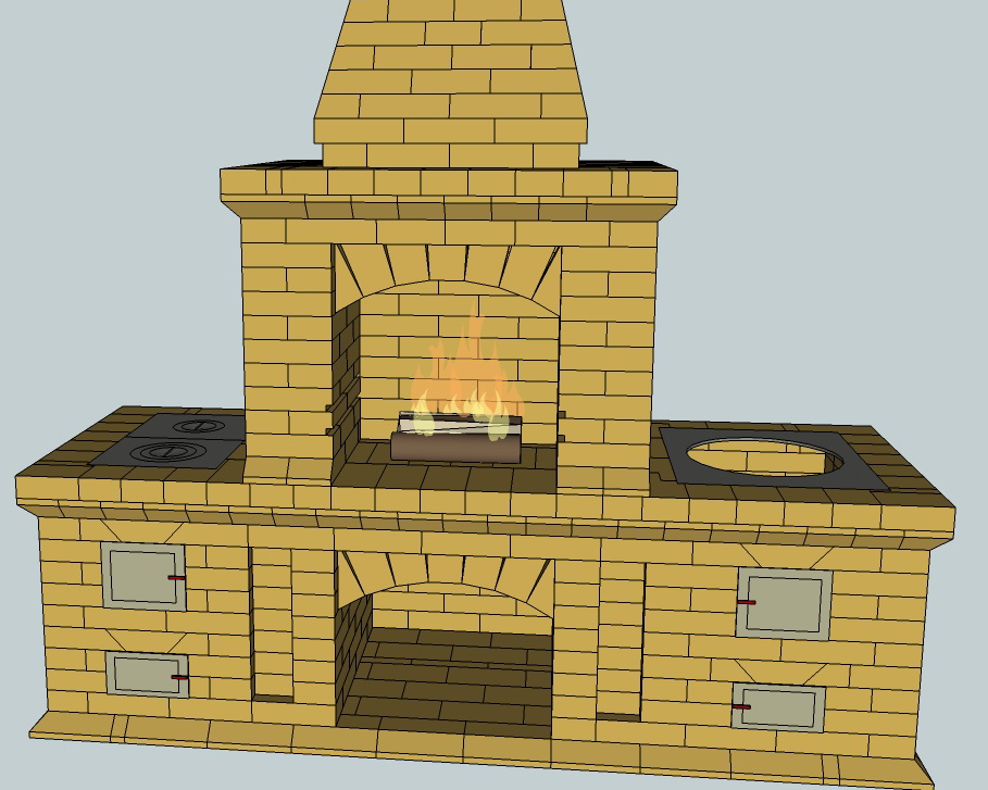 А зачем Вам по сути два одинаковых агрегата с обеих сторон от очага? Та что планируется под казан вполне себе может сойти и за плиту при необходимости, даже более того, если предусмотреть возможность перекрытия канала после протопки можно попробовать режим тандыра, а слева почему бы не разместить маленькое горнило? И получите в одном комплексе практически все необходимые режимы для основных разновидностей кухонь на территории бывшего СССР  |