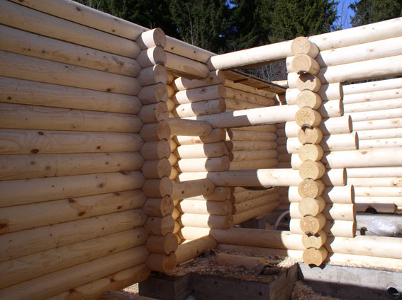 угол сруба как раз и предполагается резать, только не до самого верха(бревна 4 остается), пока оставил так для равномерной усадки