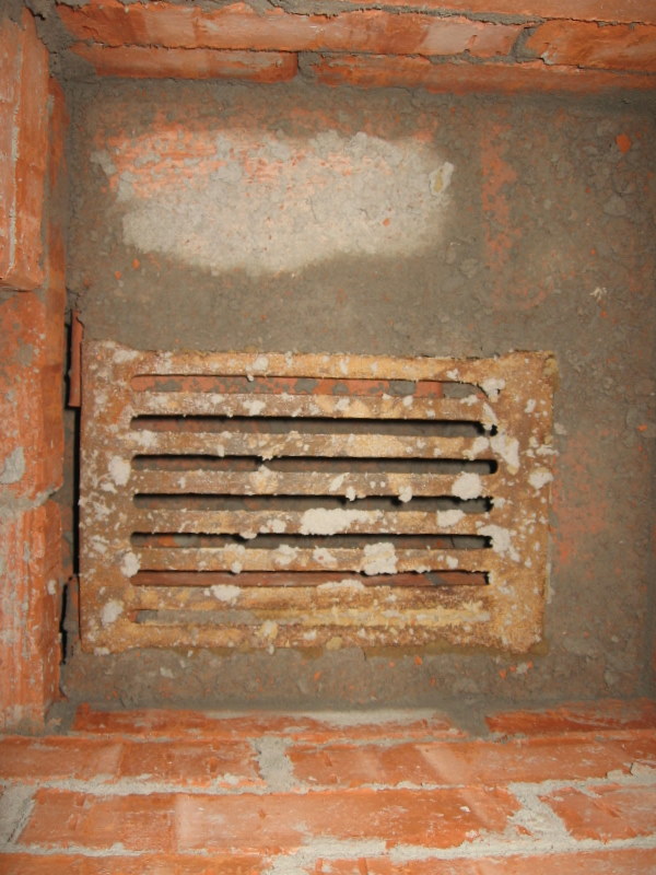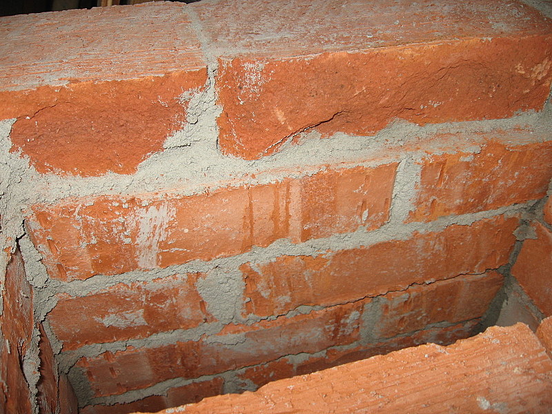 4. Срублены кирпичи в месте прохождения газов - Скорее всего для крепления подвертки. Если нет станка или болгарки, то естественно срубается часть кирпича кирочкой для установки опорного кирпича подвёртки.
