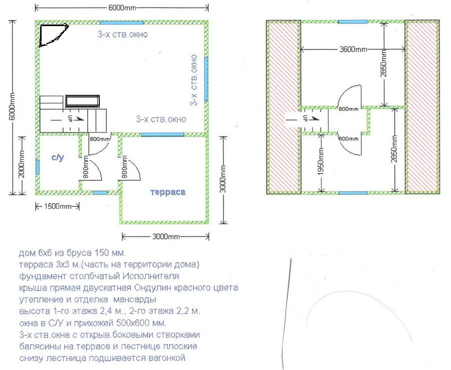 Дом из бруса 100х150, размером 6х6, пол и потолок первого и второго этажа двойные утеплены изовером 50мм. Рамы двойные.