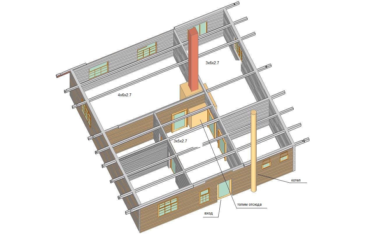 Пока посчитал теплопотери и теплоотдачи печей по калькулятору и решил, что лучше сделать две печи, работающих на одну трубу.