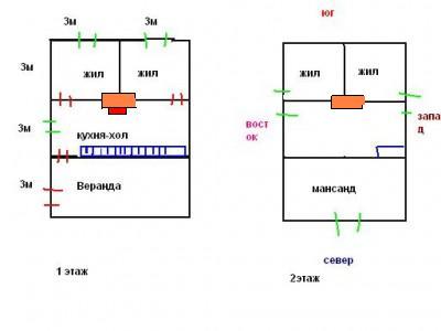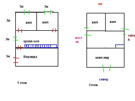 Чтото типа плана, может сразу посоветуете куда поставить. Да забыл там дописать красные полоски ент предполагаемые двери, зеленые окна, синия лестница.
