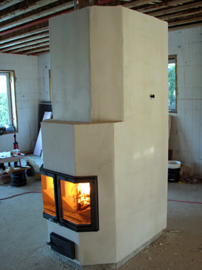 Седечник из шамотного кирпича на ребро. Вокруг внешняя отделка из красного.