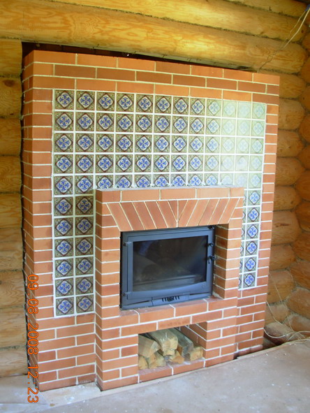 на фото КИК с открытым камином, на место которого установлена чугунная вставка