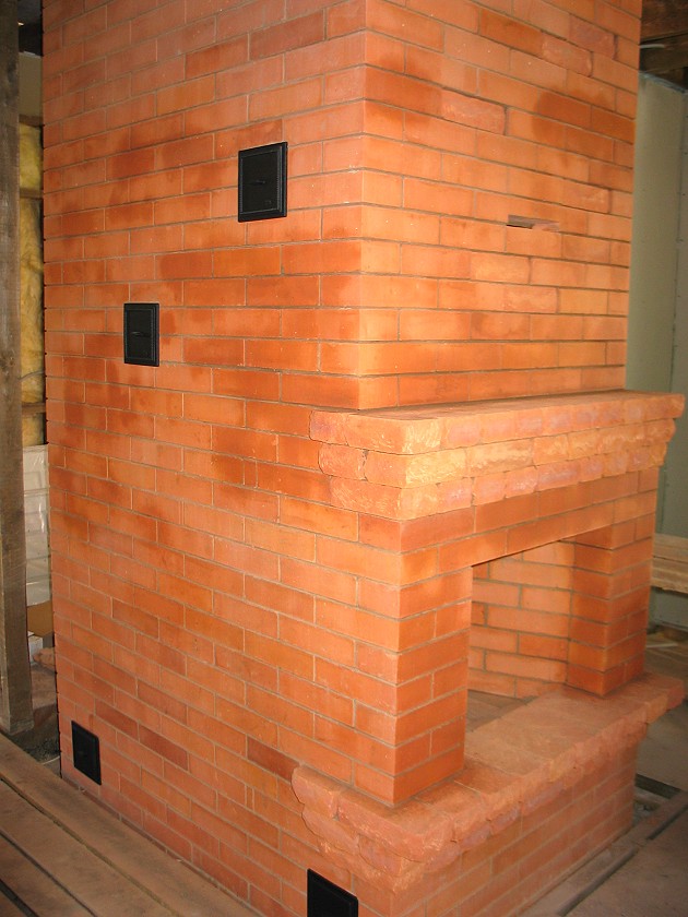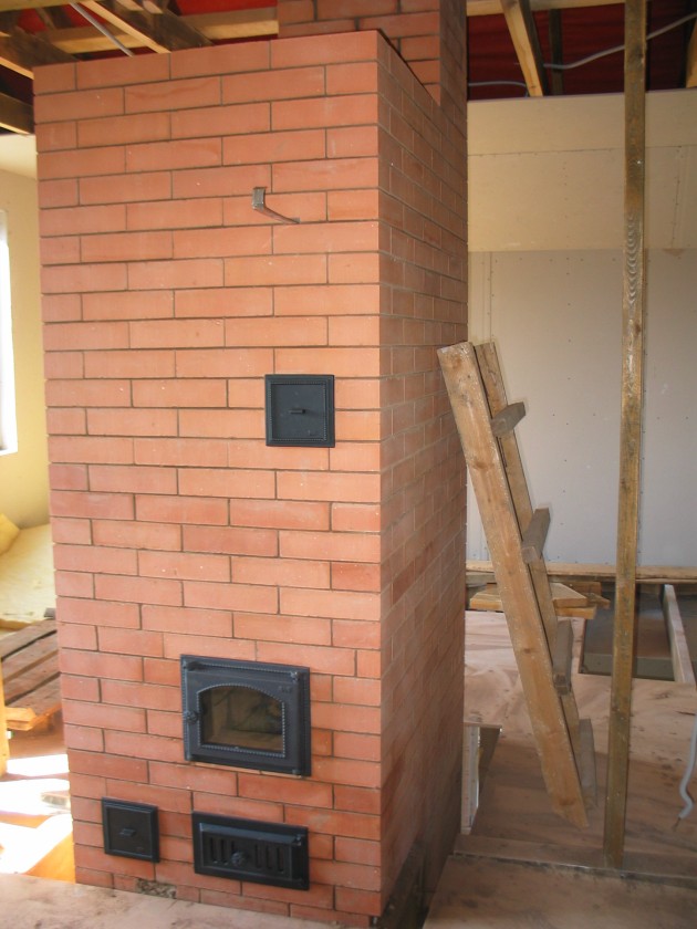 Русская теплушка И.Кузнецова с камином на транзитном дымоходе, второй этаж отопительная печь с самостоятельной топкой.