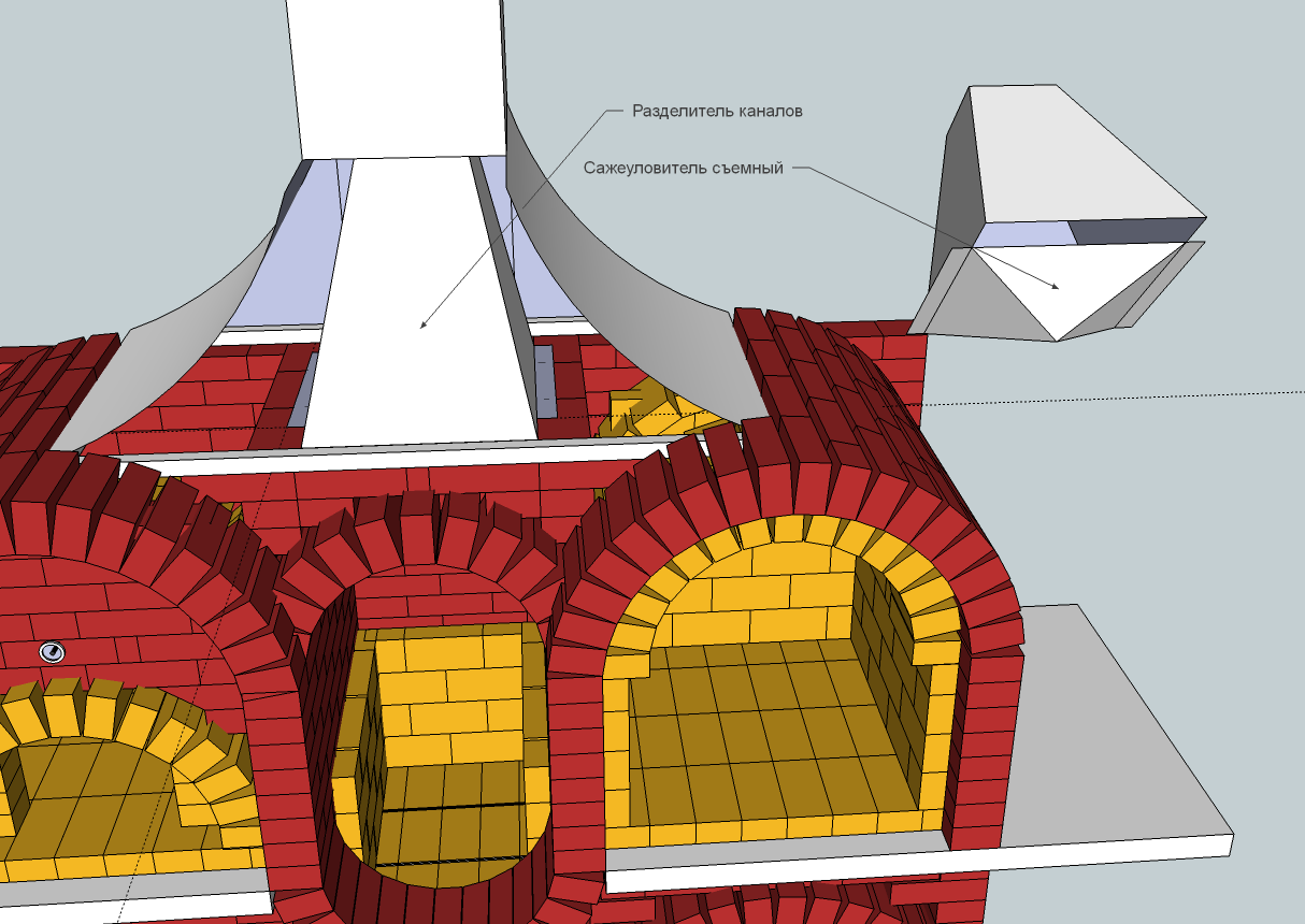 Спасибо за рекомендации, Виктор! Может сделать перемычки из металла? И ещё идея о сажесборнике (съемном) и разделении дымовых каналов. Имеет смысл? |