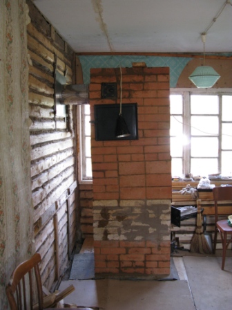 Вот и я наконец закончил свою печь. От и до делал сам, поэтому есть огрехи, я их вижу и знаю, но главное, что все работает. Очень долго выбирал способ устройства дымохода. Спасибо большое форумчанам, многие из которых очень помогли. В результате обсуждений дымоход сделал без наклона, т.к. не хотелось иметь сажи в каналах трубы, затекающих в печь. Изначально хотел выход из печи сделать под углом 45 градусов и через стену по улице. В результате выход прямой и думаю это правильнее. не будет конденсат стекать в печь, а чистить будет удобнее. Выход из печи сделал через круглый переходник с 150 на 220 и далее сендвичем в стену через разделочную коробку. До этого были варианты изготовления перехода с прямоугольника на круг 150 мм. Но ничего подходящего не нашел, а сделать никто не брался. Планировал установить трубу и через мансарду по традиционной схеме, но вскрывать потолок и крышу купленной недавно дачки, не зная где упрусь в перекрытия не захотел. Да и отапливать мансарду она не будет. А на зимние вылозки и этого хватит. Вот выкладываю на ваше обсуждение несколько снимков. Может кто то найдет еще огрехи, которых я не вижу и которые еще можно исправить. Единственный оставшийся вопрос это по шамотной глине.Так как в топке использовал шамотный кирпич, его клал на шамотную глину производства подольского завода. Сразу скажу, что я бы ее не купил но из за отсутствия машины попросил соседа и он купил на рынке. Сразу смутило то, что мешок завязан веревочкой а не заварен как я видел в другом месте. Разводил по рекомендации продавца добавив только воды. Раствор на ощупь был приктически как и красной глины. ЕЕ использовал для красного кирпича. Вопрос о ее замесе задал на форуме, ответов не было а на даче не было инета, вот и развел только на воде. Так вот это глина после выдержки с сентября по май очень странно ведет себя. Провожу по шву рукой, она осыпается, красная глина покрепче. Некоторые швы были в трешинах и прошлось их расшить и замазать трещины. Пробные топки показали, что печь работает, хорошая тяга даже при двух метрах трубы. Купил 4- метровые, но т.к. конструкция опоры временная, для проверки работоспособности, окончательно соберу позже. Трубы 1 мм нержавейка. Утеплять или делать сендвичем весь дымоход так же не стал по причине его веса. Думаю что этих труб хватит не какой то срок, а там может и другую печь поставлю. вот снимки моего творчества.