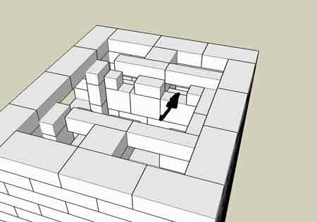 Ошибок куча, из того что быстро - почему подвертка нижнего яруса взлетела на 16 ряд, как ограничивается подача ВВ в топку, выходы из каменки где, опора для поддержки кирпича перекрытия, зачем козырек на входе во второй ярус, подрезка подвертки по дыму ...