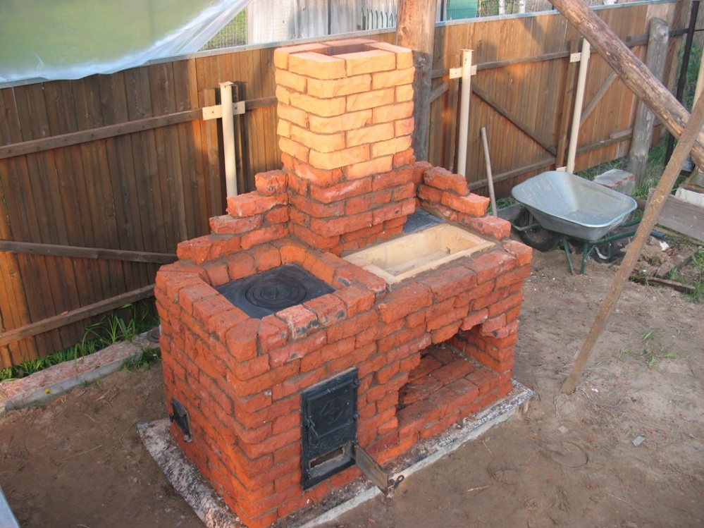 Справа - топка мангала, футерованная шамотом на ребро, кмк.