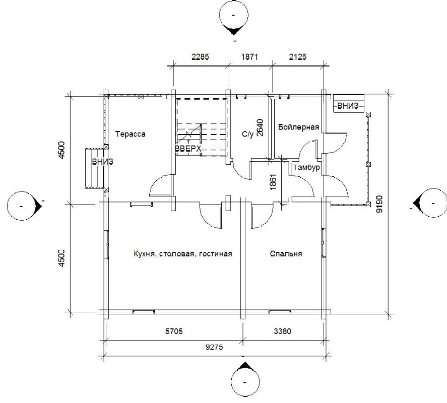 При этом в кухню должна выходить варочная поверхность, хлебная камера (духовка?) и прозрачная топочная дверца (хочется хоть какое-то подобие камина). В спальню на первом этаже можно запустить лежанку, если это реализуемо.