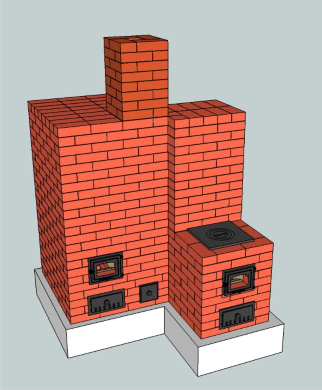 Детальный проект Бик-М1 автор выкладывал, поэтому мне не пришлось мудрить с шамотным ядром, подачей ВВ, швами и проч. Сделано схематично.