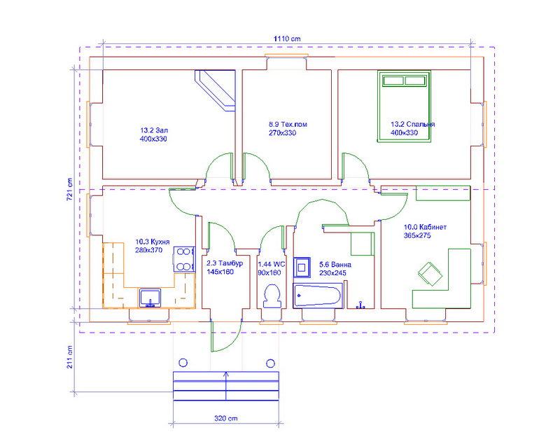 В тех помещении тепло сильно не нужно, там окошко 100 на 60. В ванной окно тоже 100 на 60, в туалете 60 на 60, в тамбуре получается нет окон.