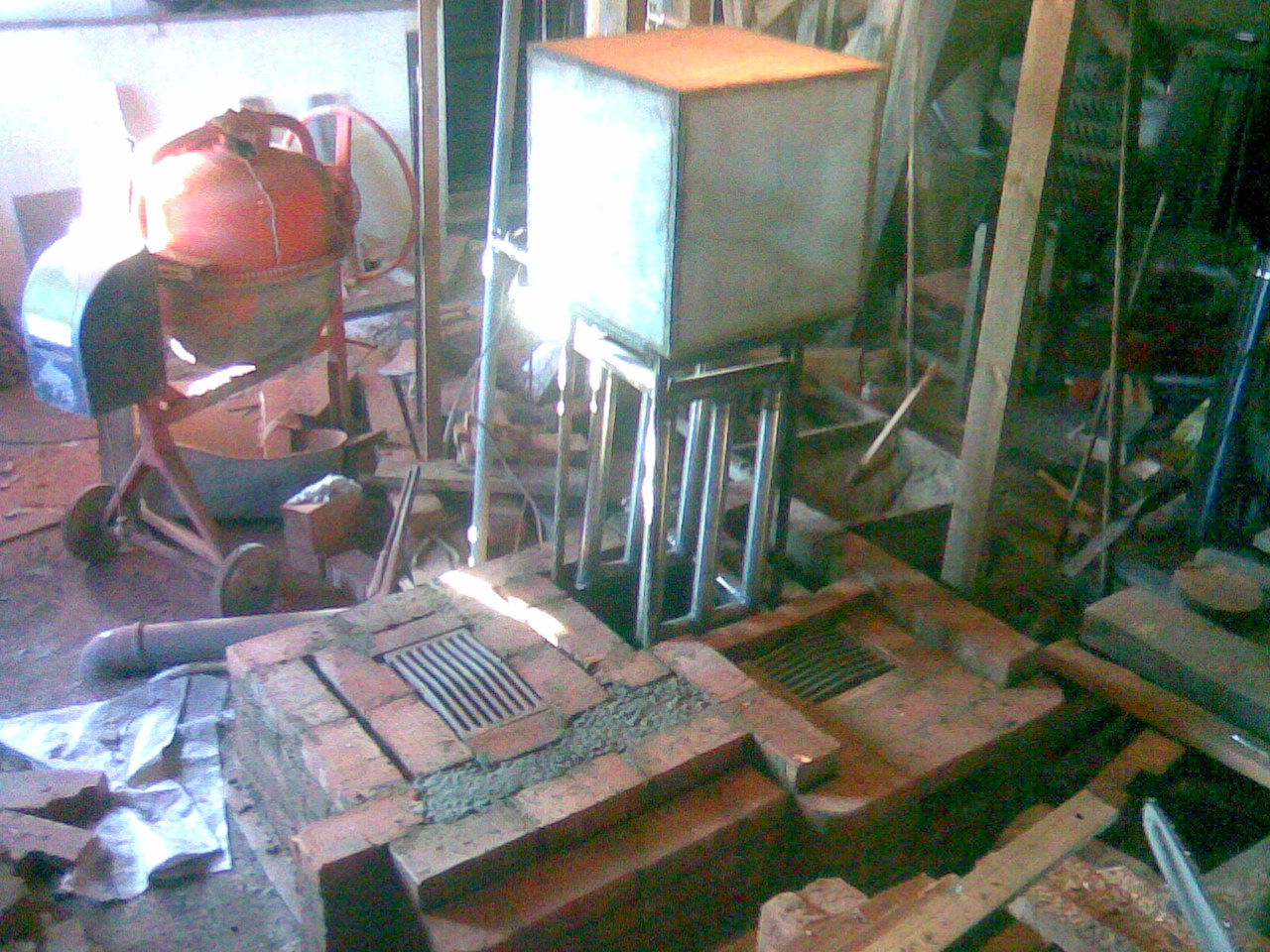 Здравствуйте уважаемые печники! Сам я печником ни в коей мере называться не могу, просто сложил год назад дома первую печь, которая была разработана мной после долгих часов засиживания в интернете. Когда конструкция начала обретать смысл, я понял, что каких-либо похожих аналогов я не встречал ( но, наверное, они есть). Более того, оказалось, что мой вариант сложен местами с отходами от канонов печного дела. Поэтому у меня возникло желание поделиться своими идеями, которые оказались вполне работоспособны, с той целью, что кто-нибудь, может быть, возьмёт себе на заметку.Во-первых я сразу остановился на конструкции печей Кузнецова, как на самых логичных, с моей точки зрения. Моя печь имеет футерованный топливник сухой шов, каналы для поступления добавочного воздуха, катализатор, один колпак, один вертикальный канал и два горизонтальных. Печь до сих пор немного не доделана, кончились кирпичи тогда, еще буду удлинять слегка два канала и ставить сушильный шкаф. Теперь об осбенностях. Это печь - камин со встроенным котлом и комбинированным отоплением. Котел , конечно же, в колпаке, но он небольшой, 6 м нерж трубы 57 мм. Далее прямо над колпаком находится бак из нержавейки на 125 литров, который омывается печью с трёх сторон и камином с одной. Высота топливника увеличена на 2-3 ряда для установки катализатора, который на отопительно-варочные печи обычно не делается. Да, забыл сказать, плита у меня тоже есть. Перекрыша печи сделана из металлического листа, над которым находится что-то типа вытяжки с воздуховодами прямо под пол второго этажа. В колпаке ещё вмонтированы два воздушных ТЭНа на 3,5 квт, как рекомендует Кузнецов, а в баке два водяных ТЭНа с термостатами на 7 квт, как Кузнецов не рекомендует.