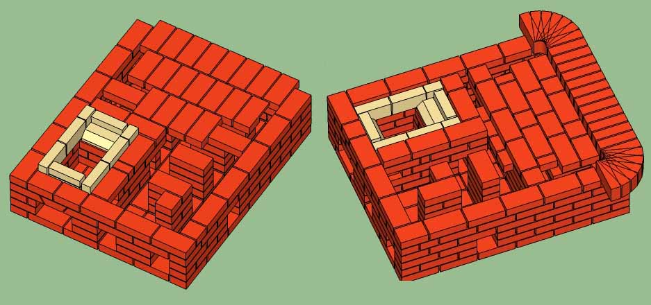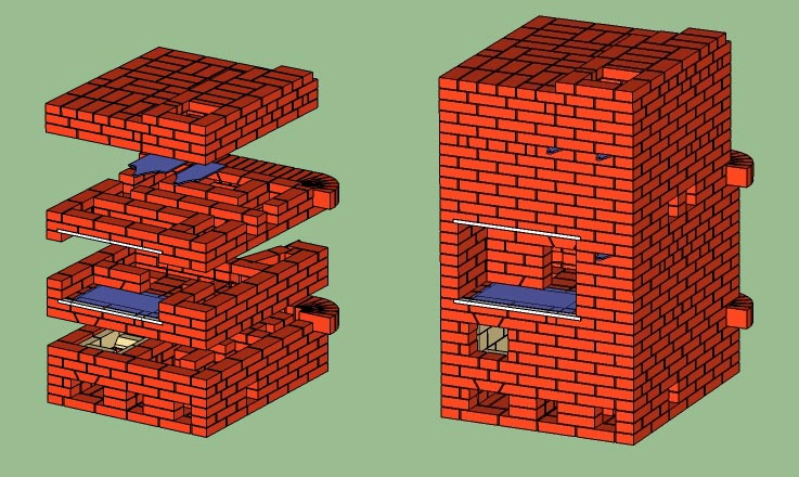 Так как выбор пал на РТИК да ещё и с задним камином, то решил попробовать восстановить порядовку отталкиваясь от информации на сайте. Пытался "нарисовать" РТИК ЗК2. Но в итоге, мне кажется, получилась вариация на эту тему ;) --- печь РТИК ЗК (расположении плиты и топки как у ЗК2 и ЗК3); размер 6х5 кирпичей.
