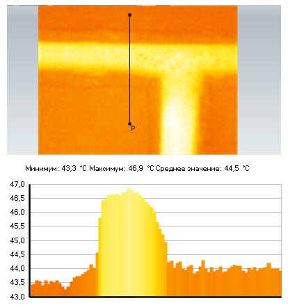 И все же шов прогревается гораздо сильней, что отчетливо видно на профильном графике снимка.