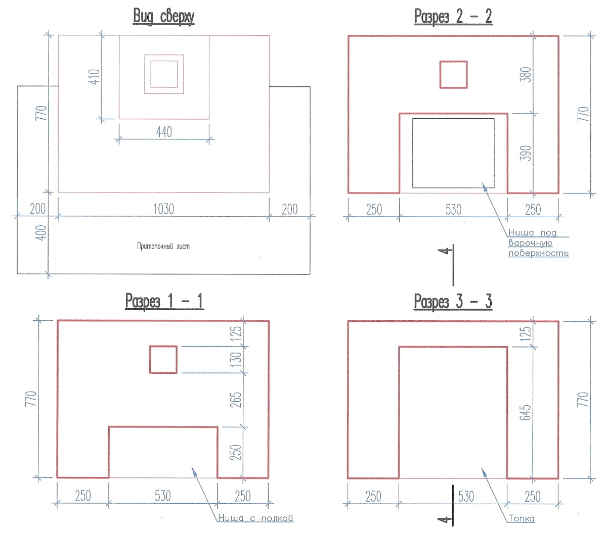тогда уж и рисуйте дизайн внешнего вида, опять же согласовывая с исполнителем, а размеры будет подгонять печник по проекту