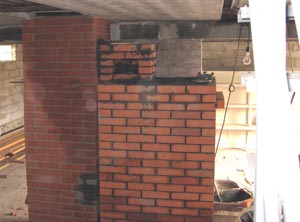 Практически закончилось строительство печи на первом этаже цеха готовых каминов. Осталось поставить дверцы, почистить наружные поверхности печи и расшить наружные швы. Печь построена при активном консультировании со стороны Владимира Жирнова. Владимир считает необходимым отметить, что ширина топки завышена по сравнению с его рекомендациями (300мм против 250мм), а сечение опускных каналов нижнего колпака избыточно большое.