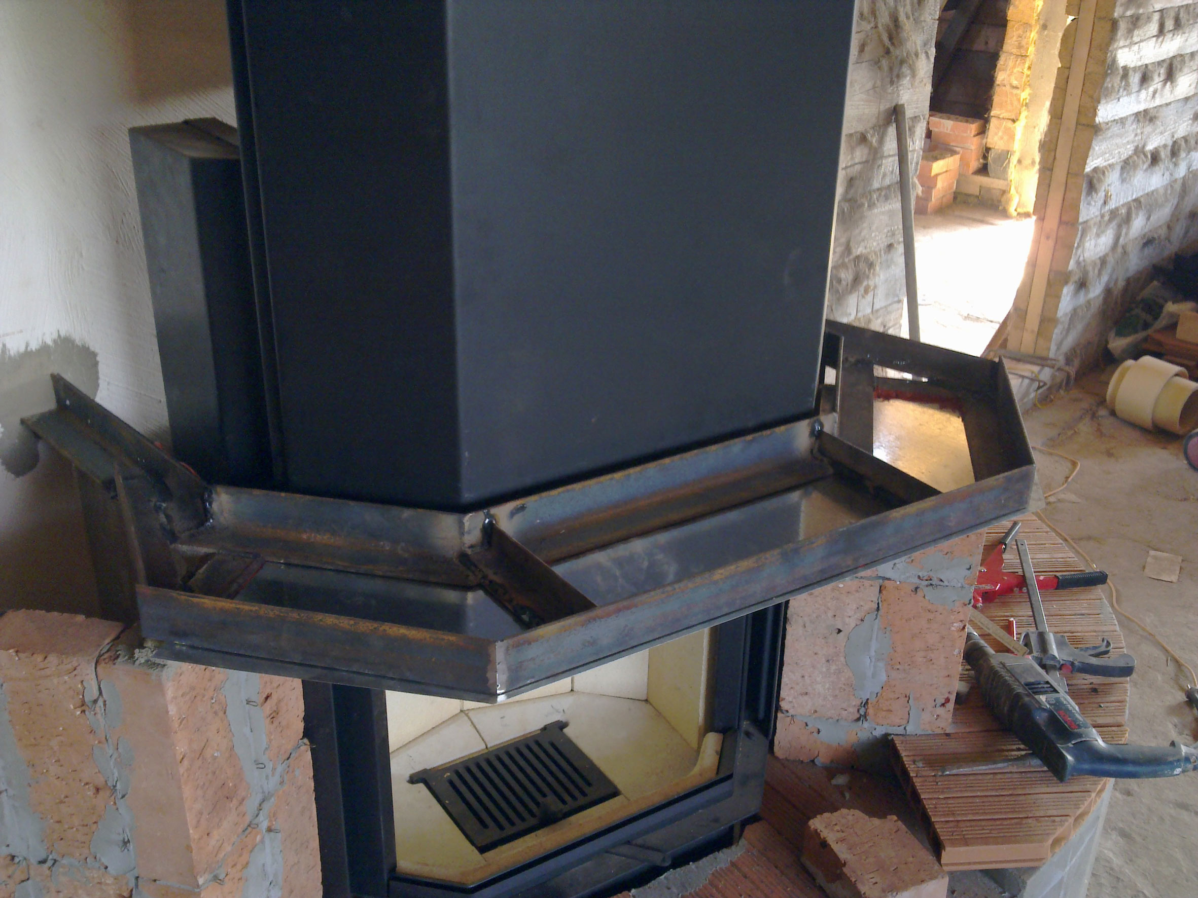 Камин в стиле "Кантри" сделан на основе каминной топки Schmid Pano 67 h .