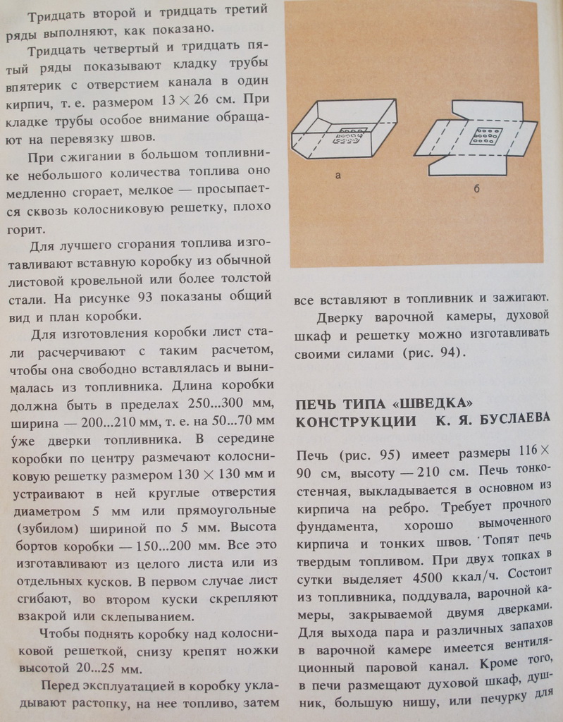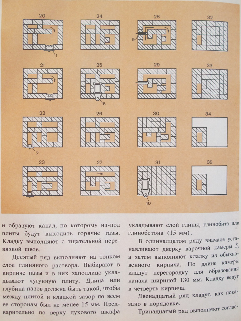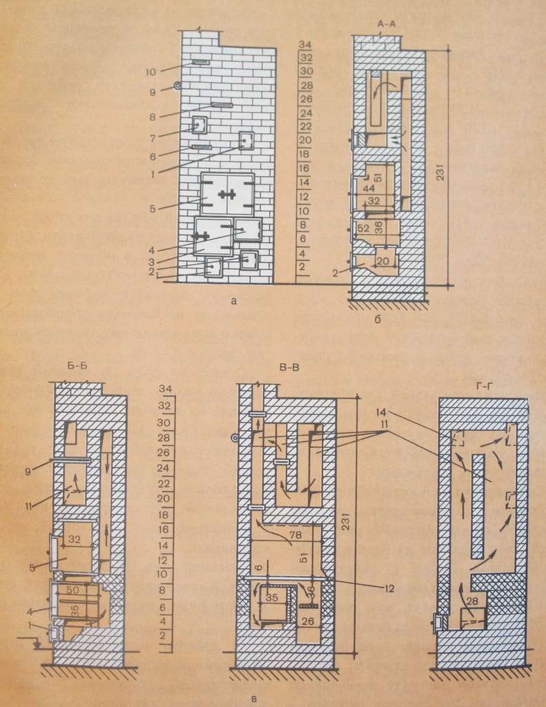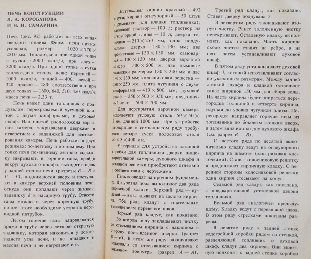 Отопительно-варочная печь прямоугольная ПОВ-3700 конструкции Л.А .Коробанова и Н.И. Самарина из книги А.М.Шепелева "Кладка печей своими руками" 2-ое издание , 1988г., стр.216