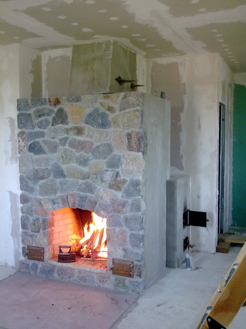 камень люблю с детства.Док. фильм про ацтэков помню просмотрел и заболел их скальной геометрией. А в прошлом году мне на день строителя зубило с победитовым напаем подарили(по приколу).А 30 км от города есть гранитный карьер. Я день лажу вручную кучки красивого нужного камня собираю,потом погрущик, самосвал и куча 2-3 куба на объекте. Это не облицовка . Колется нормально ,спасибо пацанам за зубило.Ложыл на мелком отсеве с цементом 4:1. Футеровка на мертеле(огн. глина) до верха трубы.Мужыки ещё крышу там поставили,но я уже уехал. А после ещё печь с каменной каминной мордой успел до осени.На морде 2 выступа -на них полку должны были положыть .По колонам камина -дымоходы. Колаковых из камня пока нет.(сайт встретил 16 дакабря 2010),но кирпичную одну уже запустил -понравилась,камень не за горами.