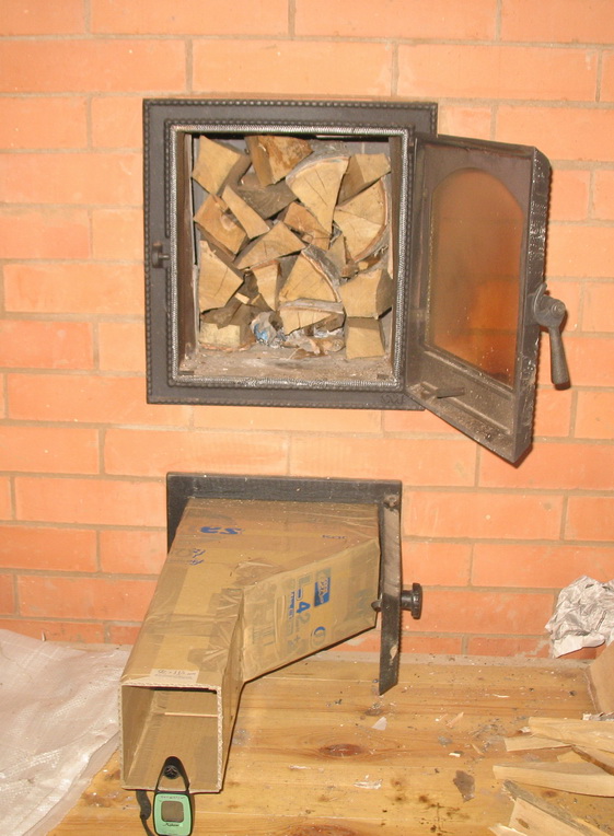 Единственно, что было добавлено к конструкции печи - короб для крепления анемометра, который естесвенно менял скорость потока воздуха, поступающего в печь через поддувальное отверстие.