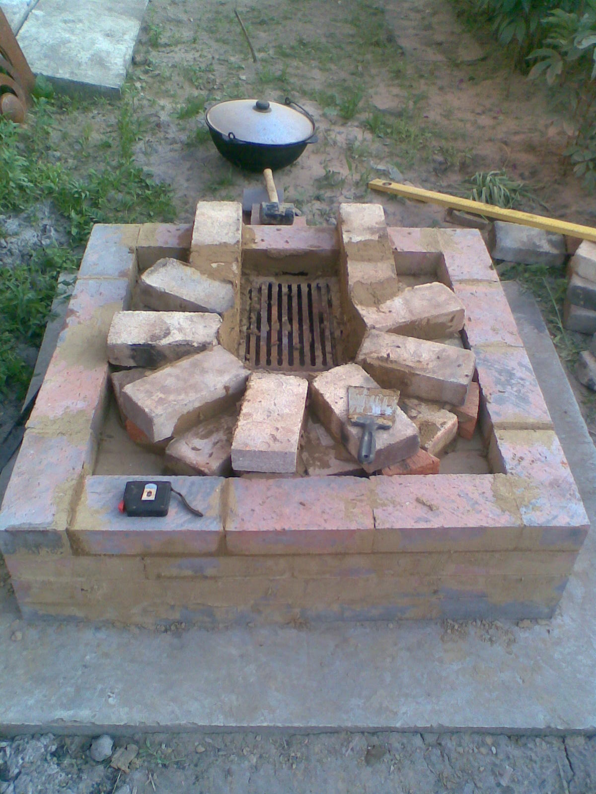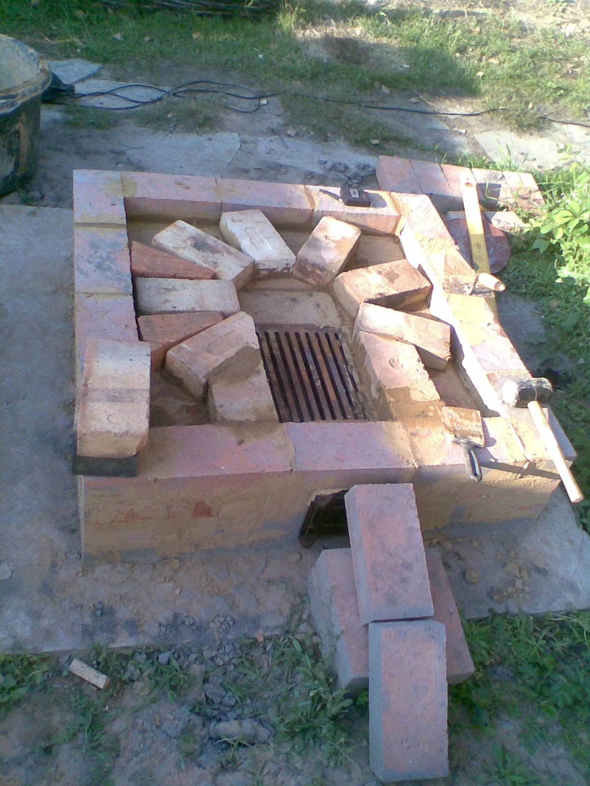 привет всем. я первый раз в жизни кладу печь под казан. по фото будет видно. вопрос к знатокам: как лучше мне будет выкладывать последний слой кирпича (не плита чугунная) с использованием стальных уголков?