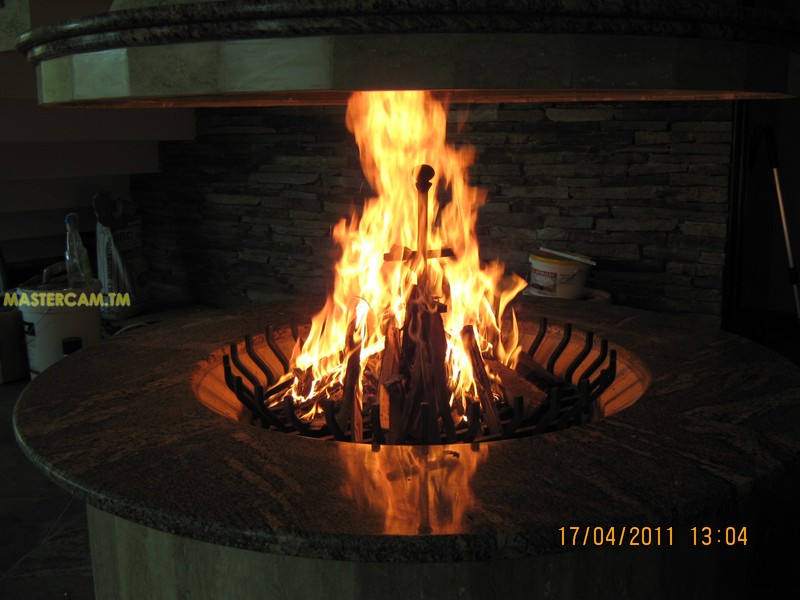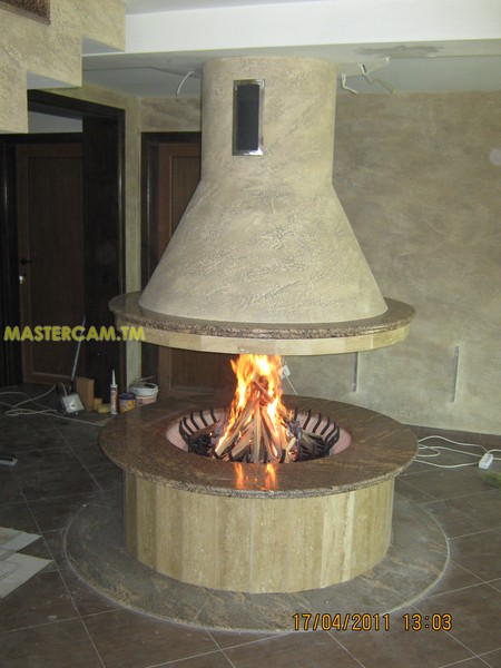 Особенно горжус с этим камином, я надеюсь, що понравится и вам.Размер очагом составляет 70 см в диаметре высота до перекритие подвесного димозборника 50 см .
