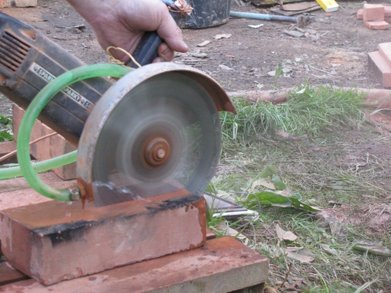 или на улице- побоялся что артрит ещё скрутит пальцы рук. Из 2 зол выбрал меньшее(для себя). Пока режу болгаркой и сухим диском смоченный шамотный кирпич во дворе.