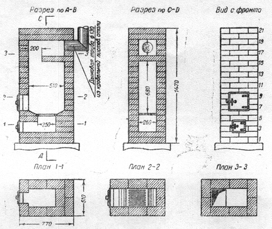 Эта печь на картинке по ходу из ГОСТ 42 года на нетеплоёмкие печи. Обычно к этим печам делали экономайзер для утилизации отходящего с дымом тепла.