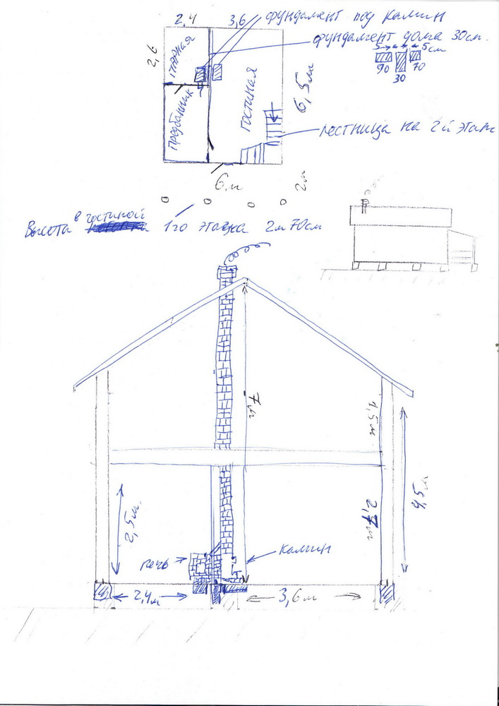Основным отоплением будет газовый котел,а вспомогательное - кирпичный камин.