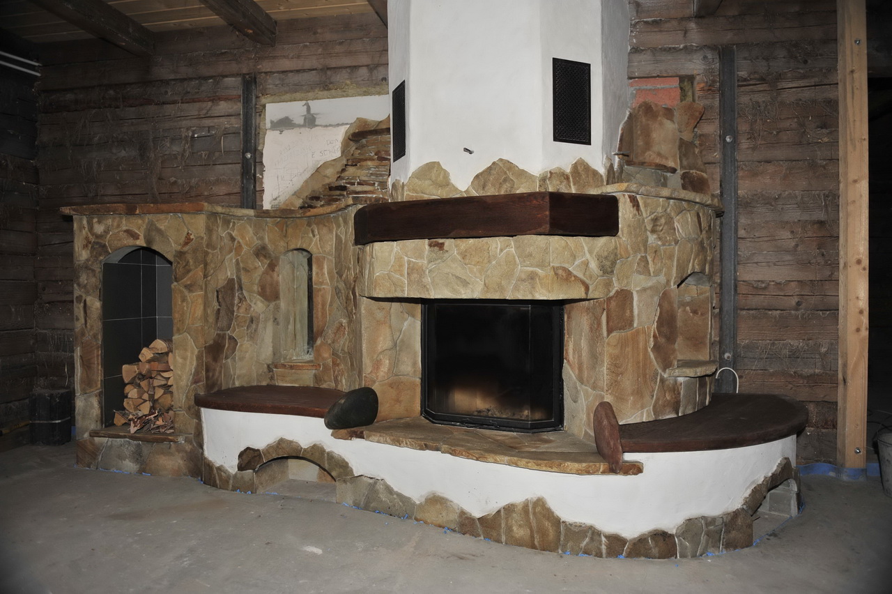 Камин в стиле "Кантри" сделан на основе каминной топки Schmid Pano 67 h .