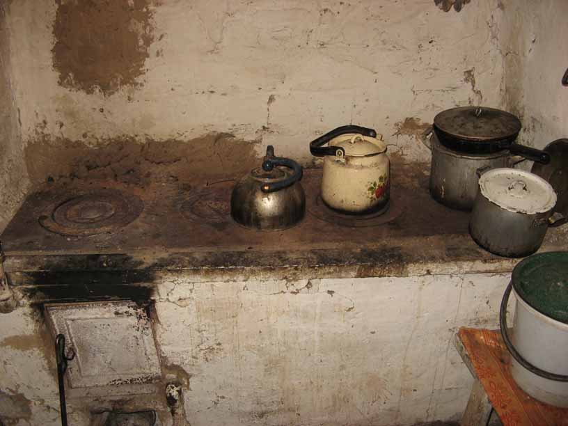 у тещи в деревне печка с водяным котлом