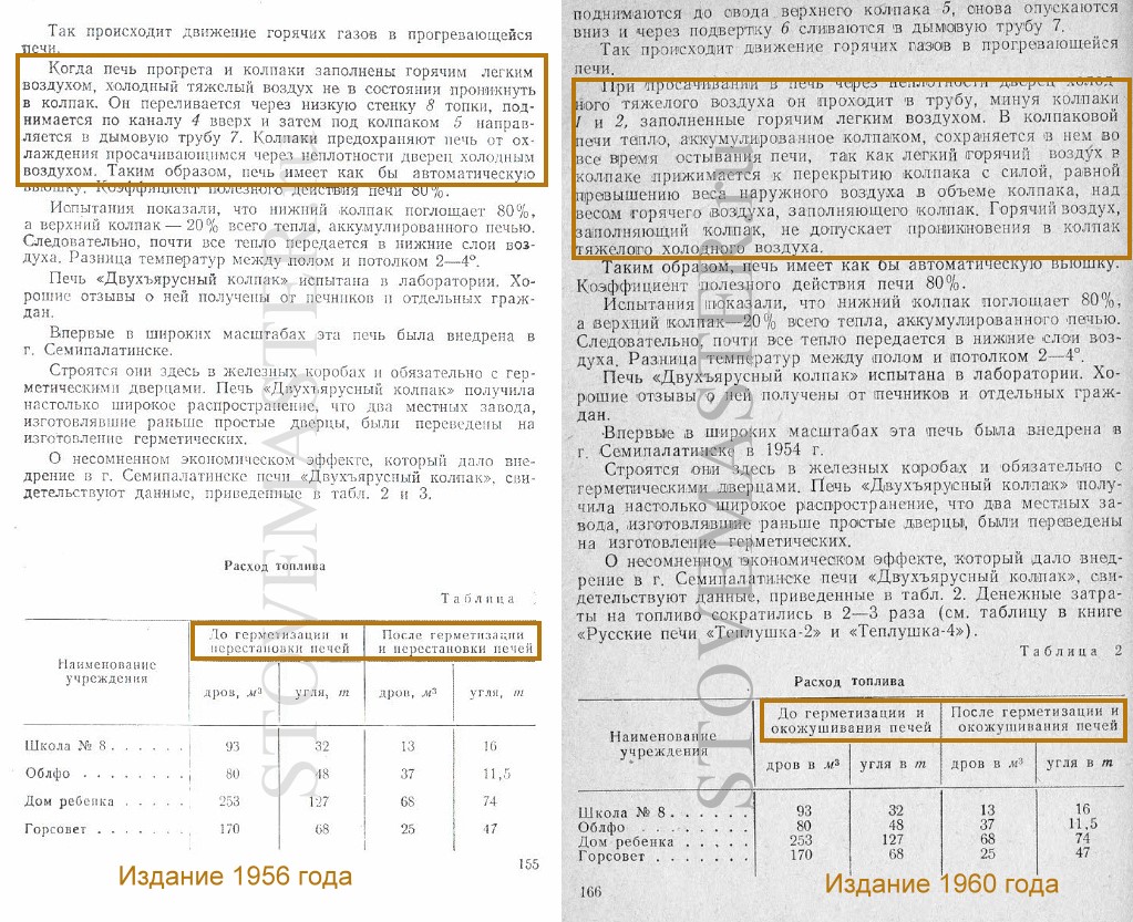 Логика в эффективности применения именно печи "двухярусный колпак" , а не ее окожушивание, отмечена на стр. 5-6 этой же книги: "Большая эффективность ее доказана массовым внедрением в г.Семипалатинске, где по данным Горплана, расход топлива уменьшился в 2-3 раза."
