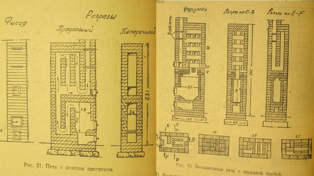 | Отопительная печь Грум-Гржимайло из учебника "Печное дело" 1934 г.и. |