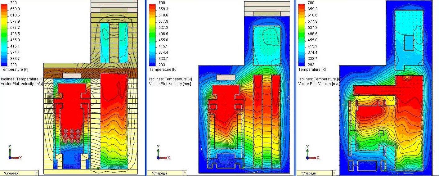 в программе Solid Works. В отличие от "любителя" в институте с программой работают профессиональные программисты. Вывод: все процессы внутри печи, при горение в качестве топлива дров, учесть невозможно.