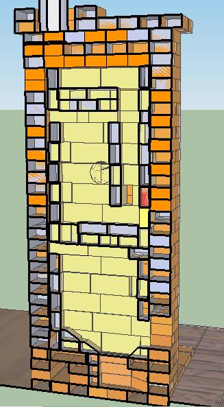 Непонятно с футеровкой - смысла особого смысла футеровать больше чем топку нет... ставить красный кирпич прямо на шамотный нельзя, как и надо предусматривать вертикальные развязки расширения... также желательно не перевязывать красный и шамот.
