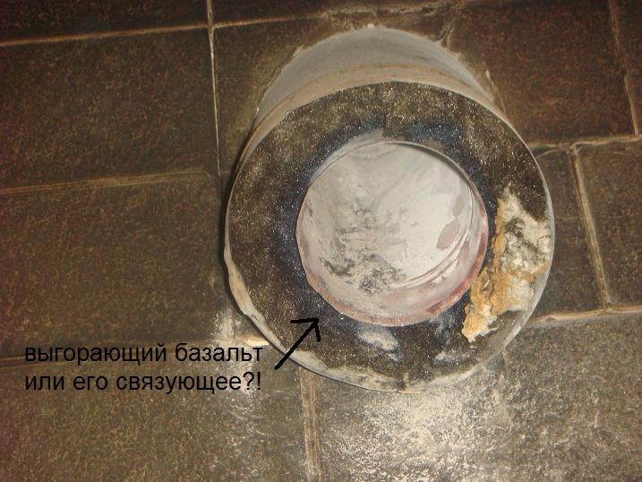 Вот это ОЧЕНЬ тонкий вопрос. Согласушь с Вами Евгений Викторович, что базальт составляющие выгорают. Фото прилогаю. И центровать им не удачная мысль. Нет на него-базальта, надежды. Однако. В Тоне и Шиделе (если купить систему с блоками) нет ни хомутов стягивающих ни центрующих. Верно!? Есть только труба +базальт в нутри самого блока (см.фото). Как тут с центровкой? Я углядел тут только одну центровку - это покрывная верхняя плита ну и уровень в руках монтажника. И ещё и Тона и Шидель используют в своих дымоходах базальт. А он как мы видим разрушается.
