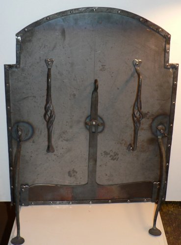 Я делаю из 3мм железа, а кованая ручка своим весом позволяет ставить заслонку вертикально и она не падает.