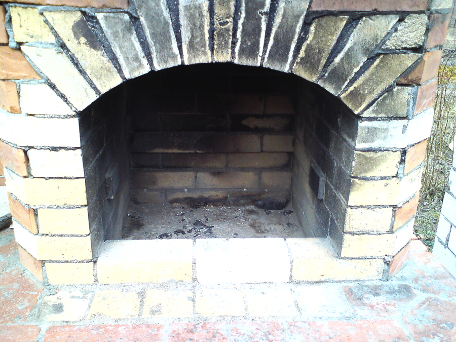 Сложил осенью барбекю + мини-печь по примеру Стрибука... Только дым решил в мини-печи пускать вверх... При контрольной растопке мини-печь дымила, барбекю, казалось, что и нет.... Итог перед вами(((