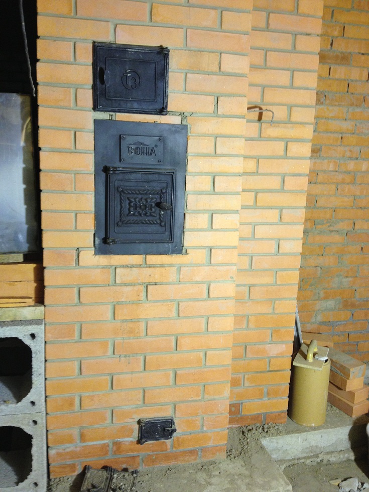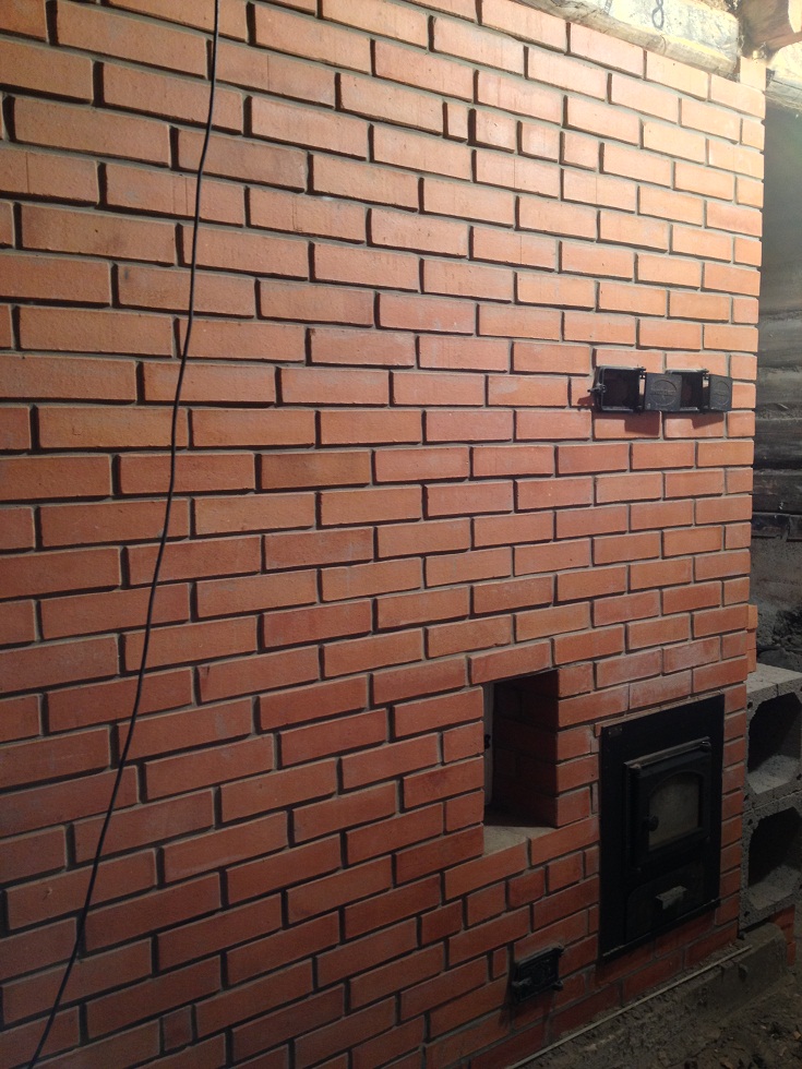 Спасибо за развернутый комментарий, вроде бы железяка не где не соприкасается с кирпичом, единственное может немного дверка каменки. Конструкция положена на шамотовую глину с цементом. Проход трубы буду переделывать, этот момент я сразу заметил. Меня труба вообще смущает, в моем понимание нормальная труба это "прямой столб", а у меня зигзаг сплошной...