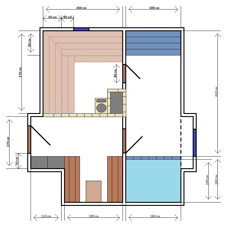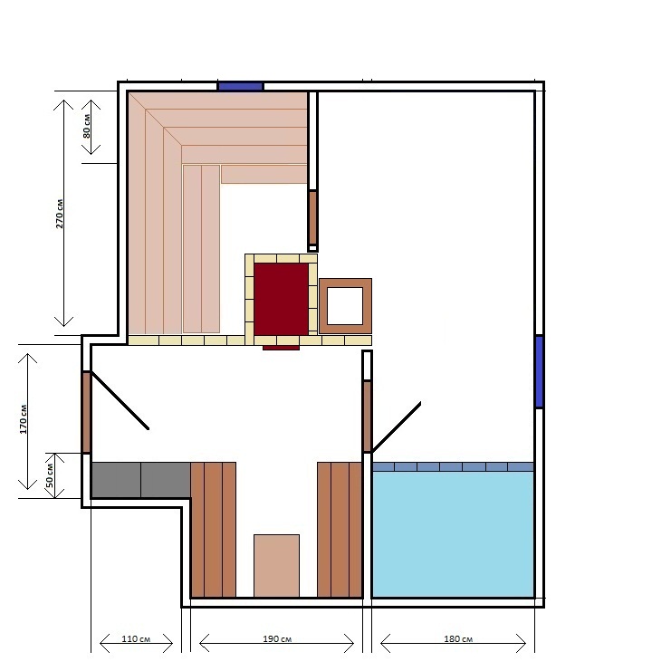 ПС: из других плюсов, конечно парилка станет поменьше, но эстетически дверца топки сместится и будет не впритык к двери. Ну и в парной окажется две полноценные стены...