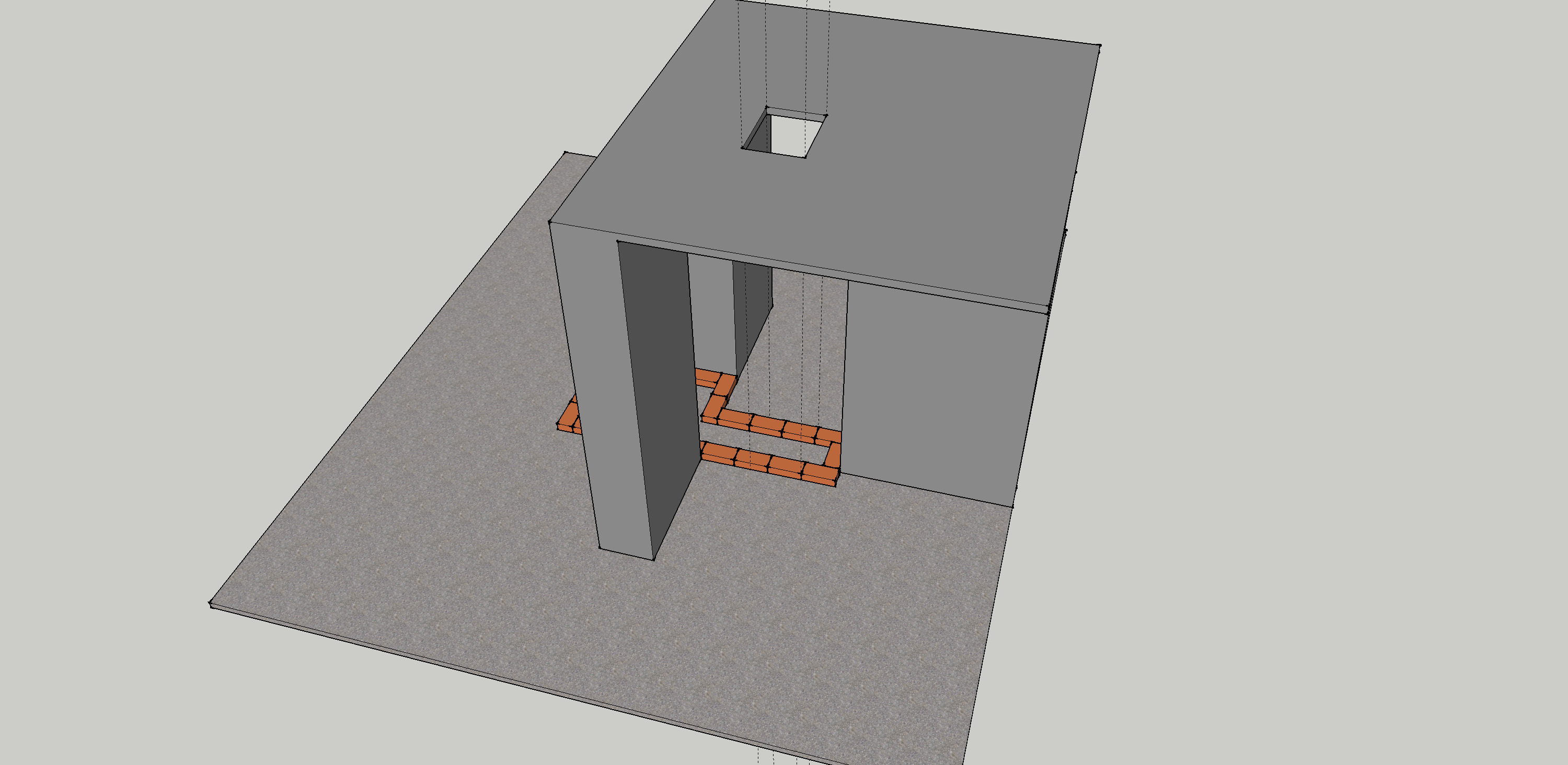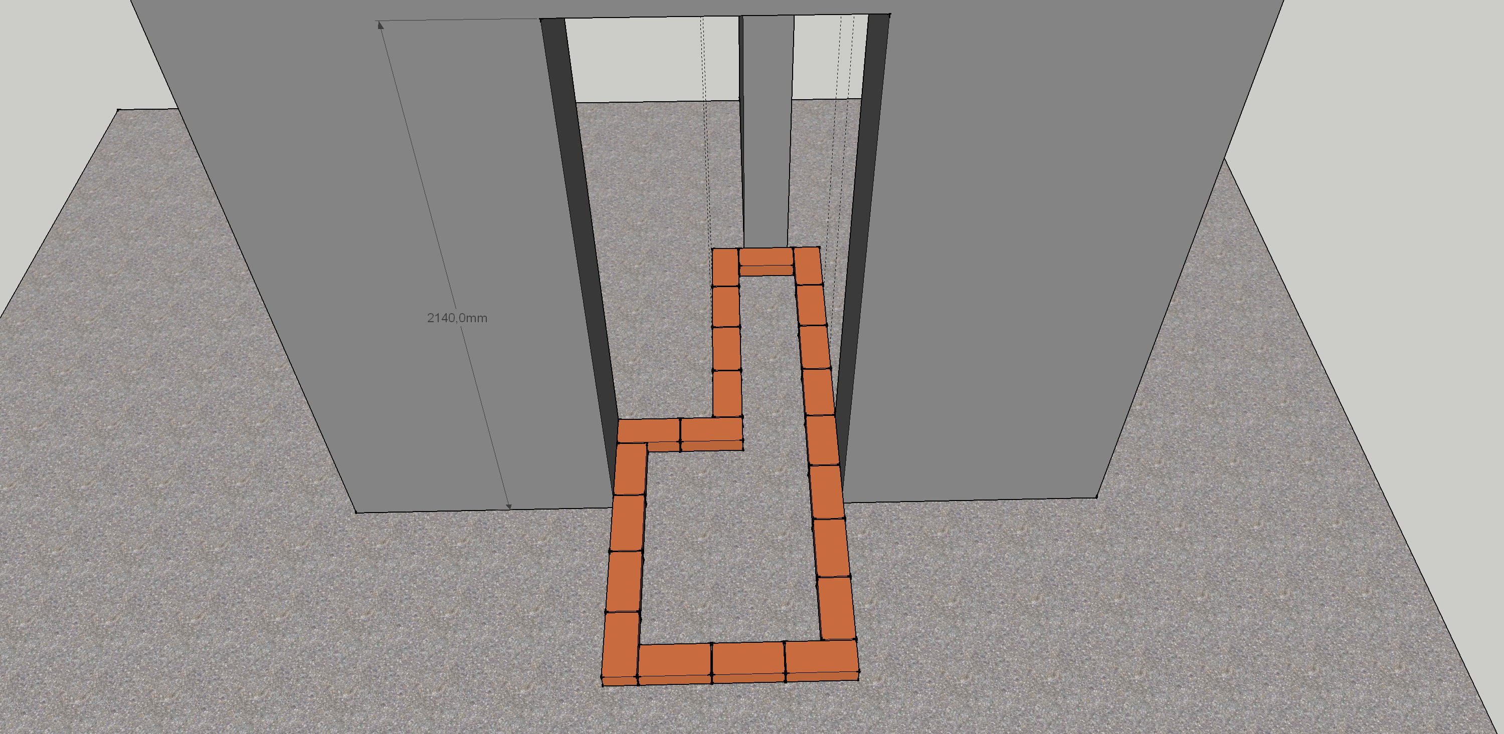 - под печь уже отлит фундамент, выложен проём. Изменить размеры проёма и фундамента, а, значит, и размеры печи можно только в меньшую сторону. Основная печь шириной 3,5 кирпича, длиной 4,5 кирпича. Щиток 4 кирпича х 2 кирпича, пристроен несимметрично, а прижат к правому боку. Щиток расположен между двумя задними комнатами, т.е. его торец будет заблокирован межкомнатной перегородкой.