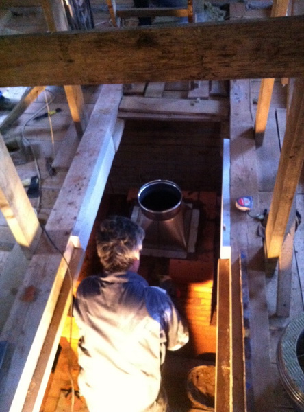 Надо убирать железяку, и гнать кирпичную трубу в шестерик до конца