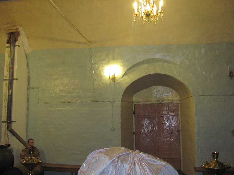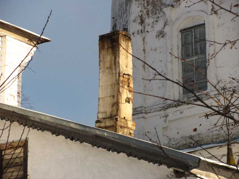 Печи были по разные стороны от входной двери, и соединялись железным дымоходом закреплённым на кронштейнах над дверью. Эстетику храма это конечно портило, но выбора не было, т. к. не хотелось пробивать ещё один дымоход в своде.