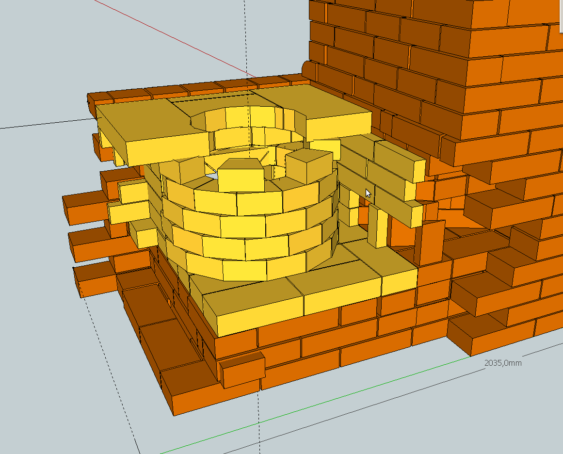 У меня не профессиональная версия Google Sketchup в которой есть разрезы, поэтому я немного вручную разломал печку что бы показать её внутри.