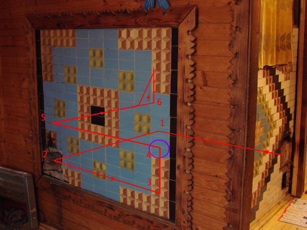 Спасибо за совет. Вынул два кирпича и почистил ниже заслонки в точке 6, где Вы и советовали. Получилось больше ведра сажи. Почистил ход и вытяжку в трубу. Затопил печь, тяга появилась, правда, не очень сильная. Из трубы пошел дым, но какая-то часть и в дом.Так и раньше было, все-таки целый год не топили.Но когда я долго протапливал печку, тяга усиливалась и дыма в доме не было. А теперь топил долго, а тяги хорошей не появилось.Прочистил ход от точки 1 к точке 2 и от 2 до 3 . Картина не изменилась.Снял размеры ходов и думаю, что их два. Сын нарисовал на схеме. В следующие выходные хочу разобрать кирпичи в точке 4 . там должен быть подъем и поворот налево. Подскажите на правильном ли я пути или ошибаюсь. Раньше думал, что нижний ход от точки 3 идет к направлению к топке, но передняя часть печи всегда холодная. И еще , можно ли разобрать кирпичи в горниле , чтобы не разбивать плитку. Размеры печи 185х136, от шестка до задней части горнила- 132 см. Заранее благодарю за помощь.