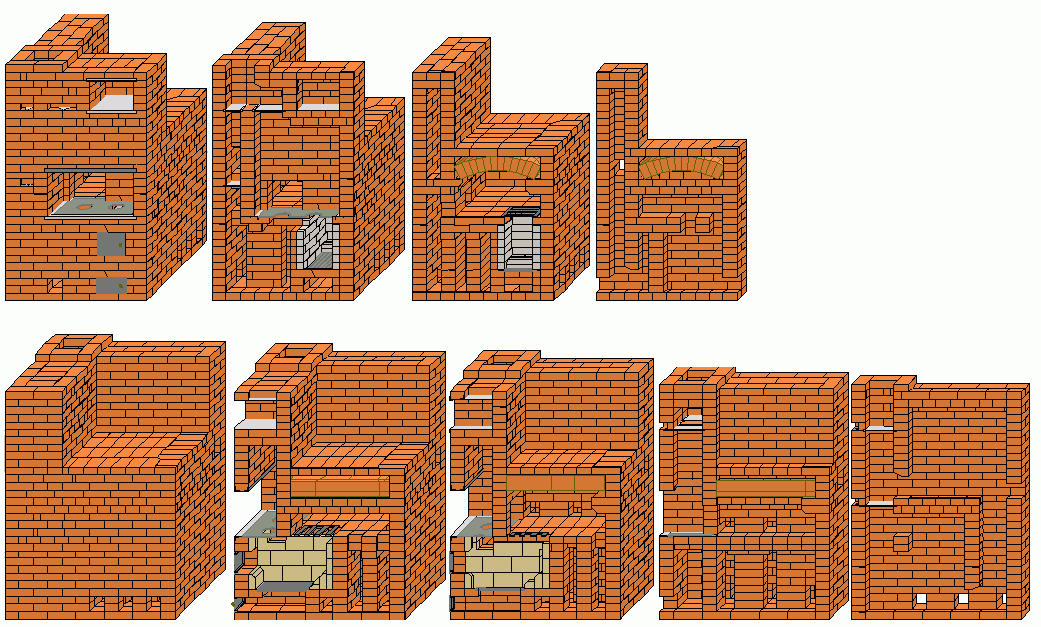 2. 3. Два красных кирпича в зольнике обозначенные белой линией стоят на ребре.