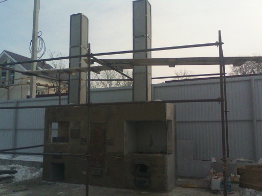 На фото выше двухэтажная печь под отделку смонтирована двумя рабочими за один день .